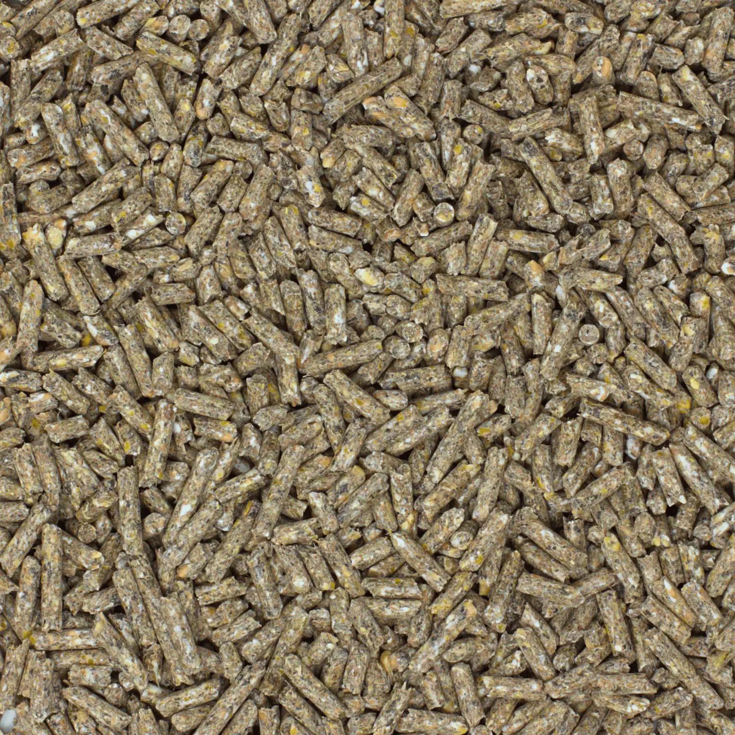 Összetétel: búza, árpa, kukorica, búzakorpa, szója (bab) extrakciós liszt (gőzzel melegítve), rozskorpa, kalcium-karbonát, monokalcium-foszfát, nátrium-klorid, aromás vegyületek (citruskivonatból és szegfűszegből) kártevők ellen, magnézium-karbonát.