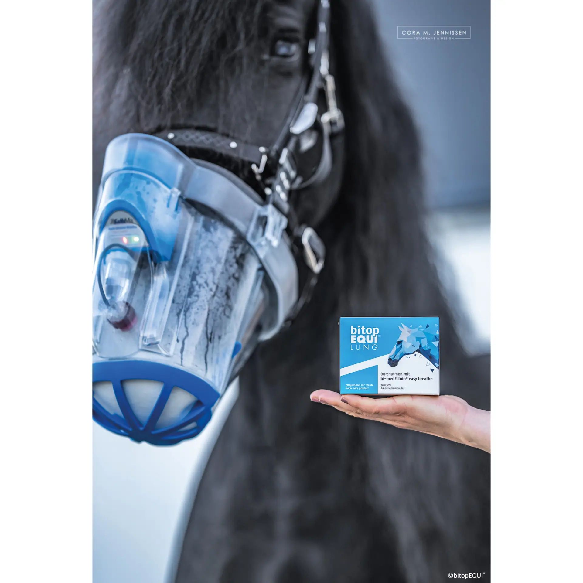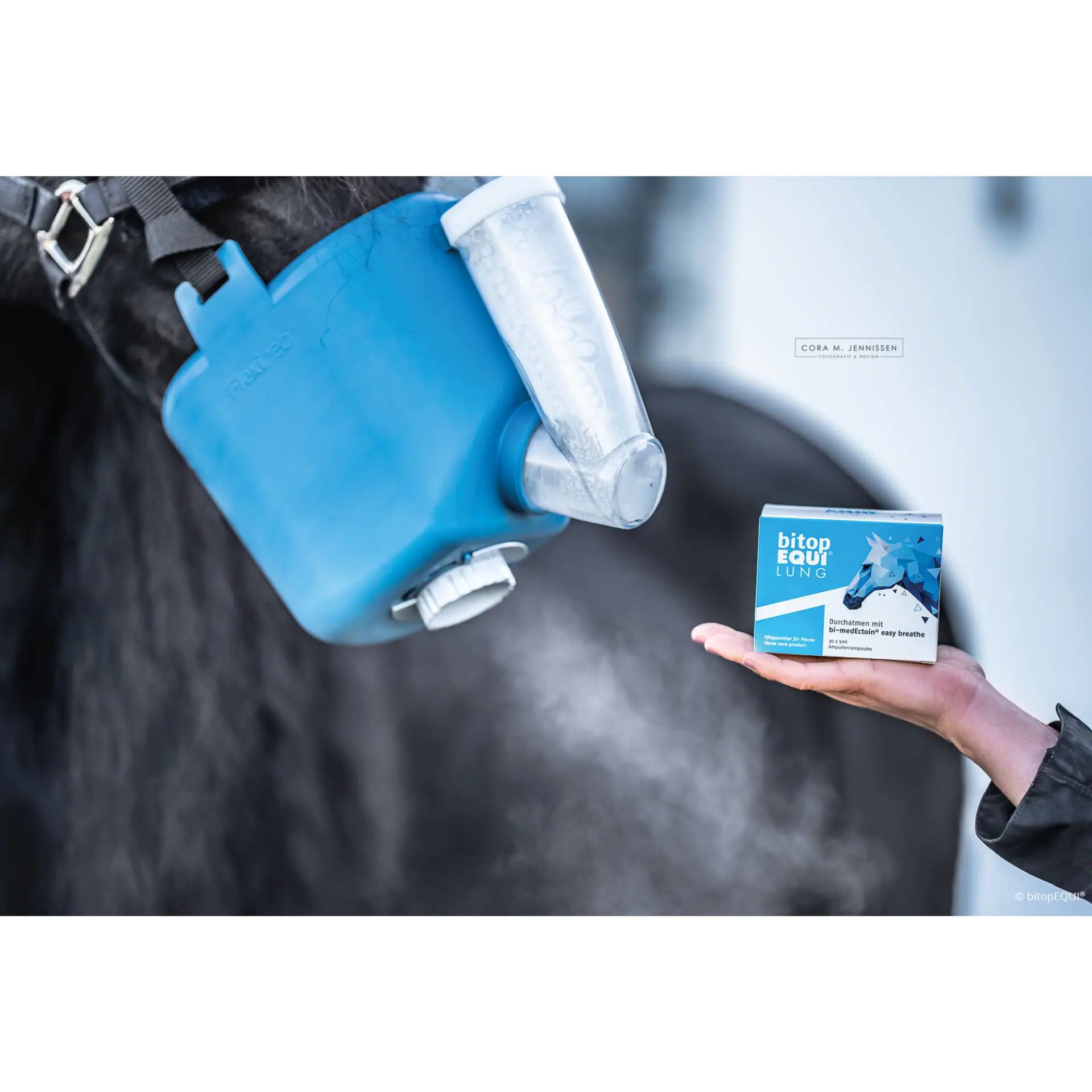 The bi-medEctoin® easy breathe ampoules consist of a sterile solution containing 13% bi-medEctoin® and water. This clinically intensively researched molecule has also proven effective in horse care and works purely physically, without being metabolized. Moreover, there are no known side effects or habituation effects, making the application particularly safe for you and your horse.
