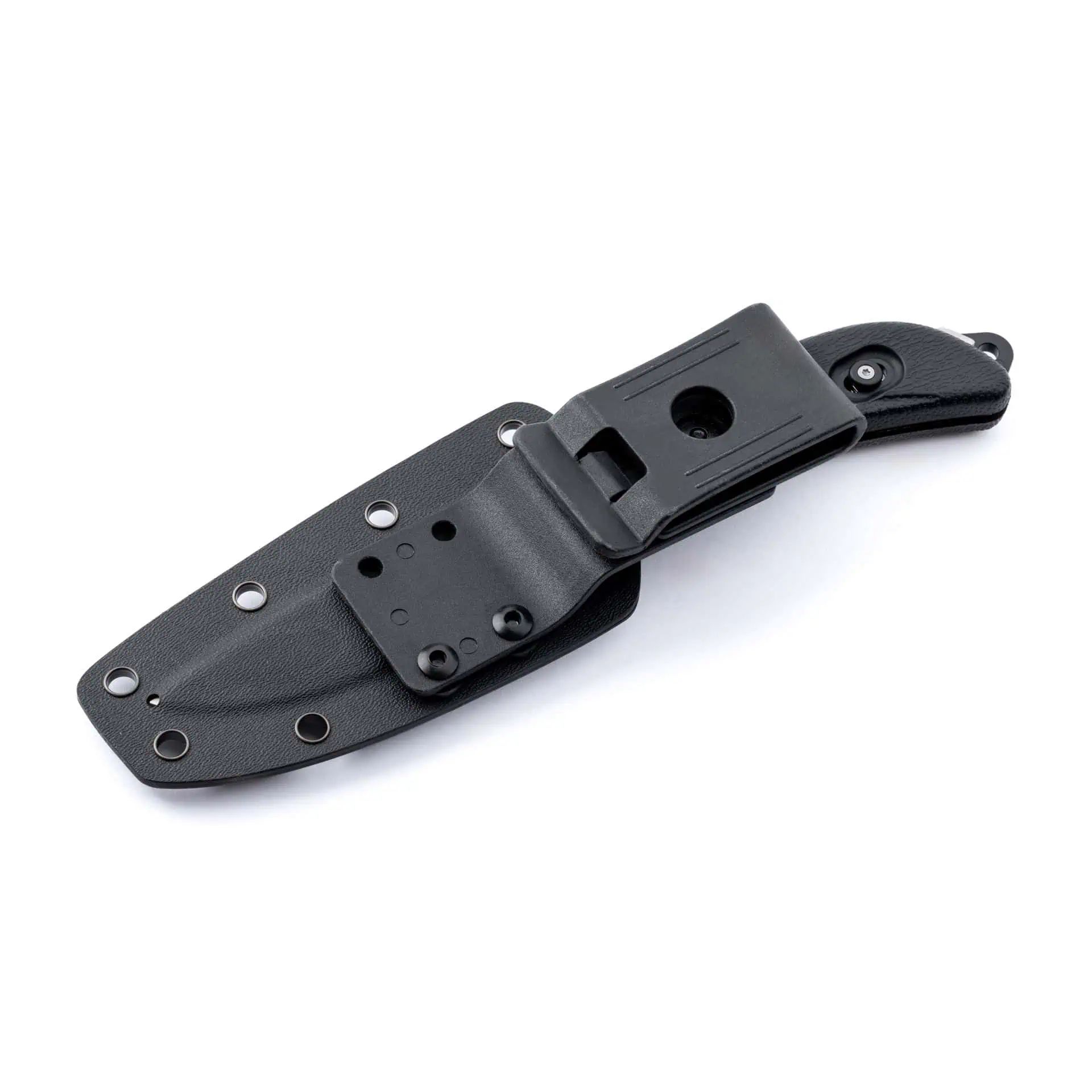 The G6 features a unique, pivoting blade design that allows for a seamless transition between skinning and gutting blades. A simple press of the locking button activates the desired function. Thanks to its intelligent construction, the knife can be disassembled and cleaned without tools — ideal for hygienic use. To extend its lifespan, clean the blade with dish soap after each use, dry it thoroughly, and sharpen it regularly. The blades are made from high-quality Swedish Alleima 12C27 stainless steel (HRC 57–59), and the ergonomic Proflex™ grip ensures a secure hold, while the Kydex sheath protects the knife when not in use.