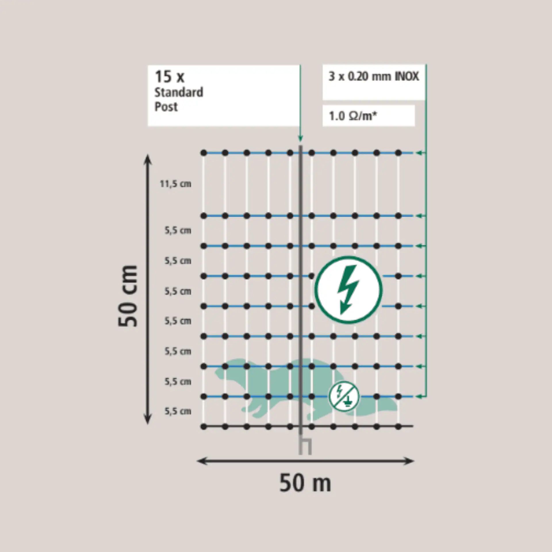 The Kerbl Otter Net is the perfect solution to effectively protect your pond landscape from unwanted guests. With a length of 50 m and a height of 50 cm, it offers optimal protection for fish and other aquatic inhabitants. The net features an appealing white/blue design that harmoniously integrates into any garden layout. Its robust construction made of PVC with double-point stakes ensures that the net remains stable and durable, even in adverse weather conditions.