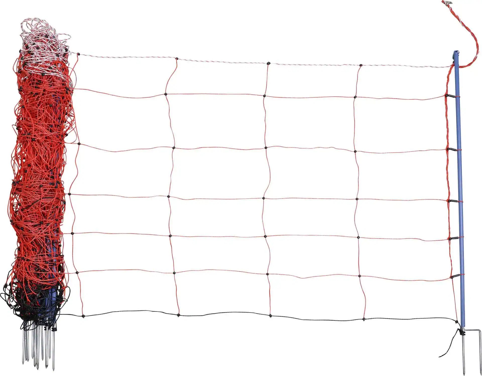 Equipped with a particularly conductive combination of copper and stainless steel conductors, this net has an exceptionally low resistance (0.27 and 0.25 ohms/m, respectively), keeping the animals being kept inside the fence as well as outside attackers away.