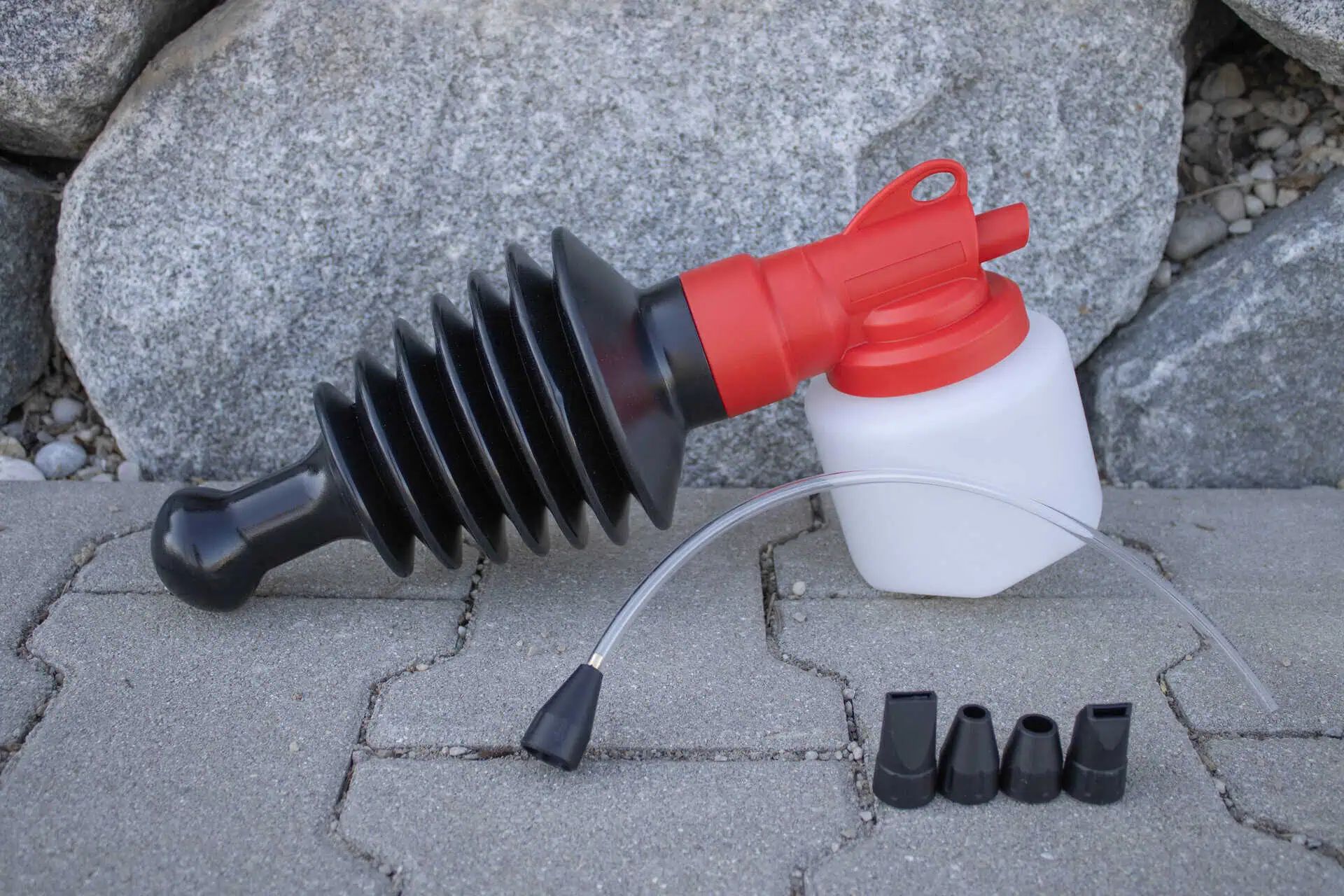 - Five interchangeable round, angle, and flat jet nozzles for universal applications, including an extension tube.
