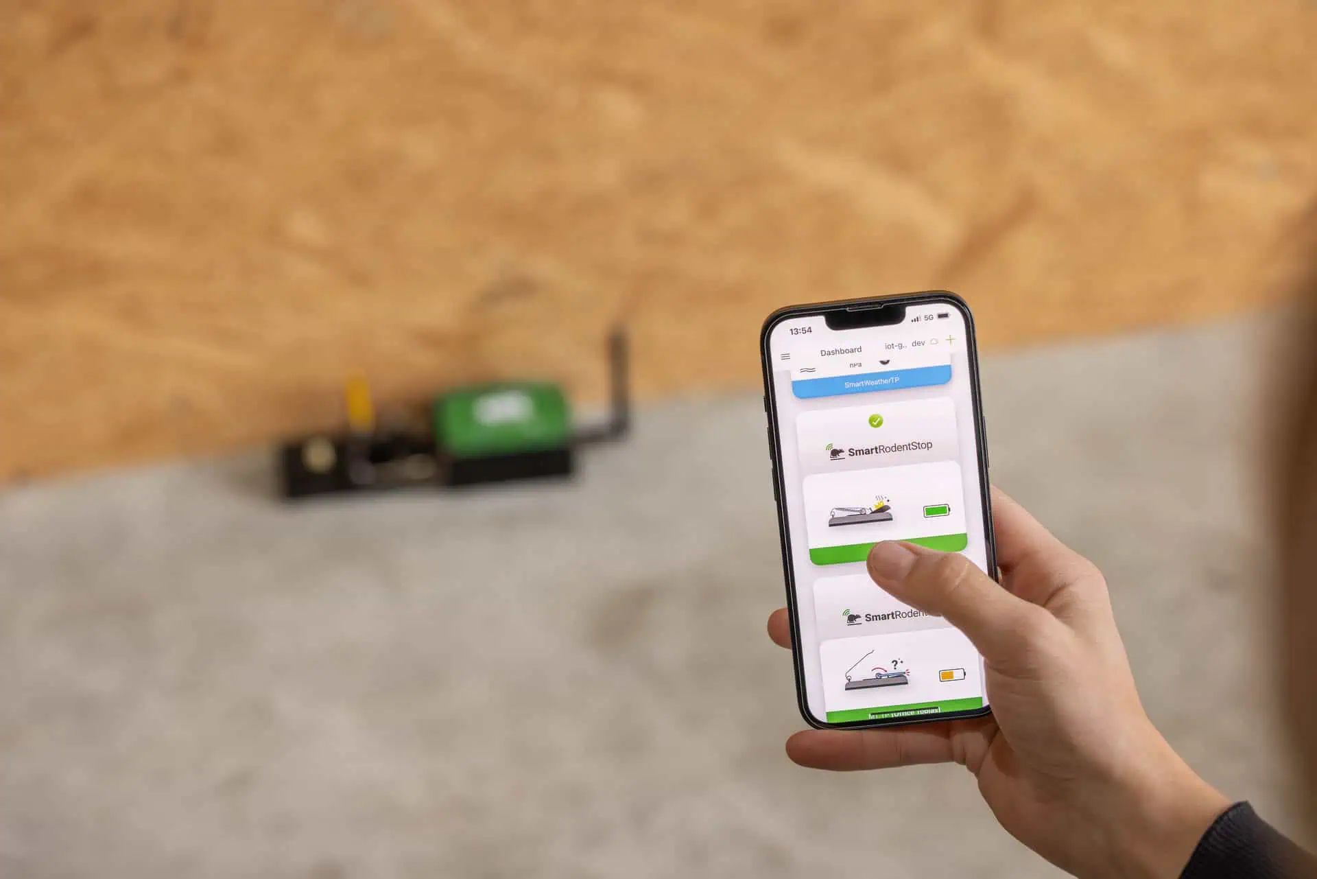 - Own app for mobile devices to monitor functions such as battery status, trap open, and trap closed
