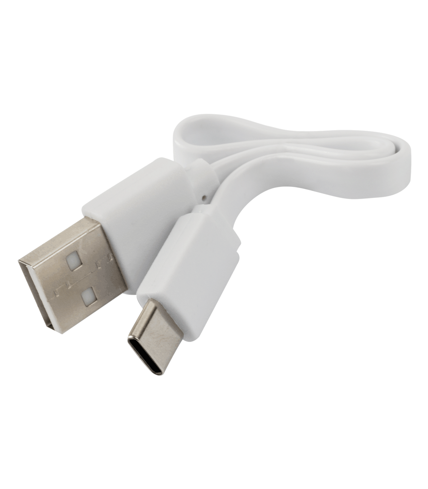 The lamp is charged via a USB-C cable (included). Simply connect the cable to the lamp and a USB power source.