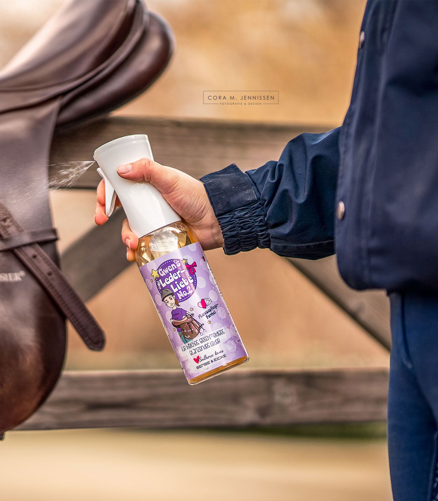 It's incredibly easy to use: Simply spray on and rub in with a damp cloth – so easy, even I can do it! After it dries, give your leather a quick polish with a soft cloth for extra shine. Your saddlery will delight you with its radiant appearance after use!