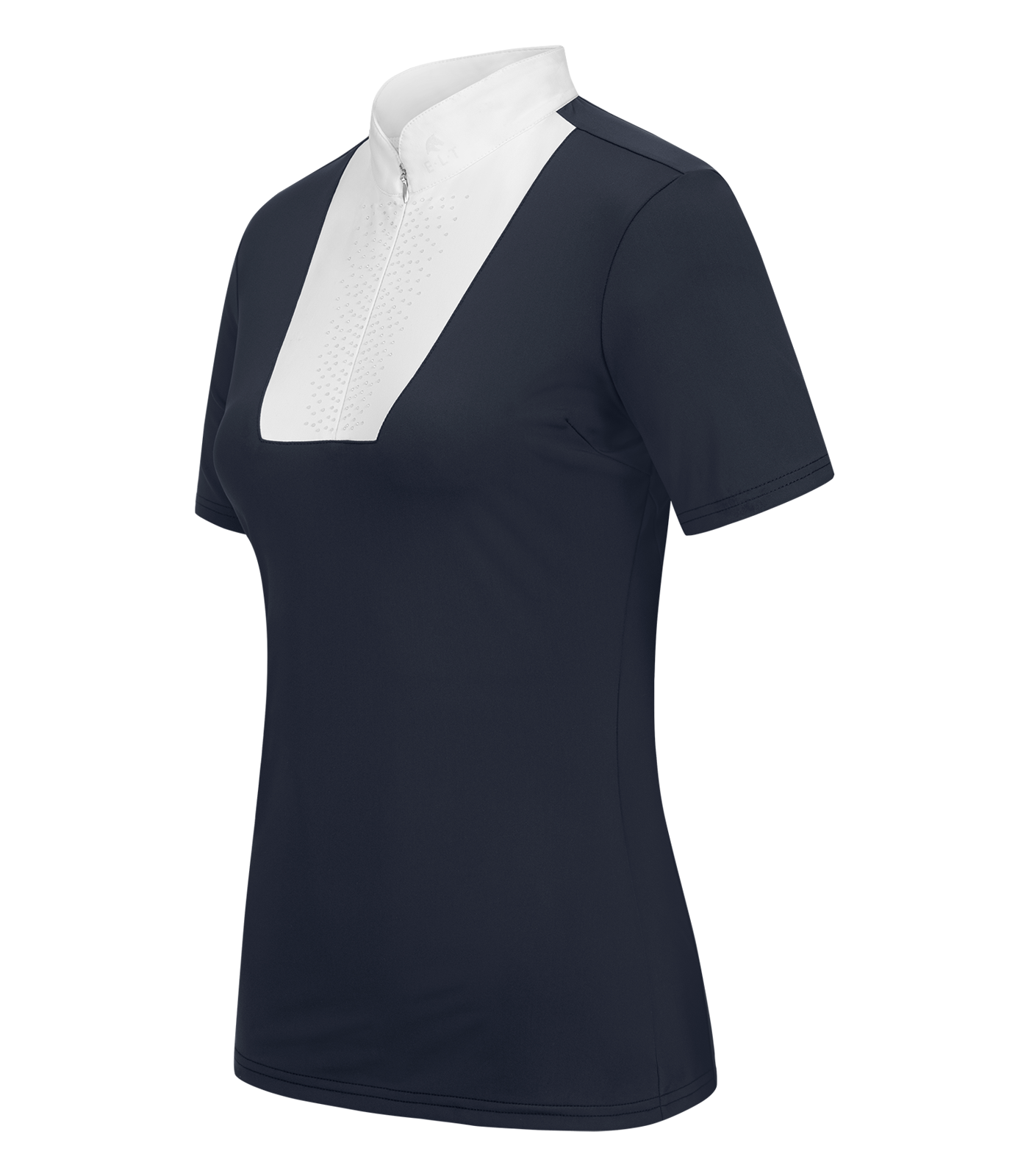 The elegant stand-up collar with a seamless zipper adds a fashionable touch. The sparkling front panel with rhinestones adds a glamorous touch to the shirt and makes you a real eye-catcher. And with the glittering E·L·T logo print on the collar and back, you can also show your affiliation with the ELT family.