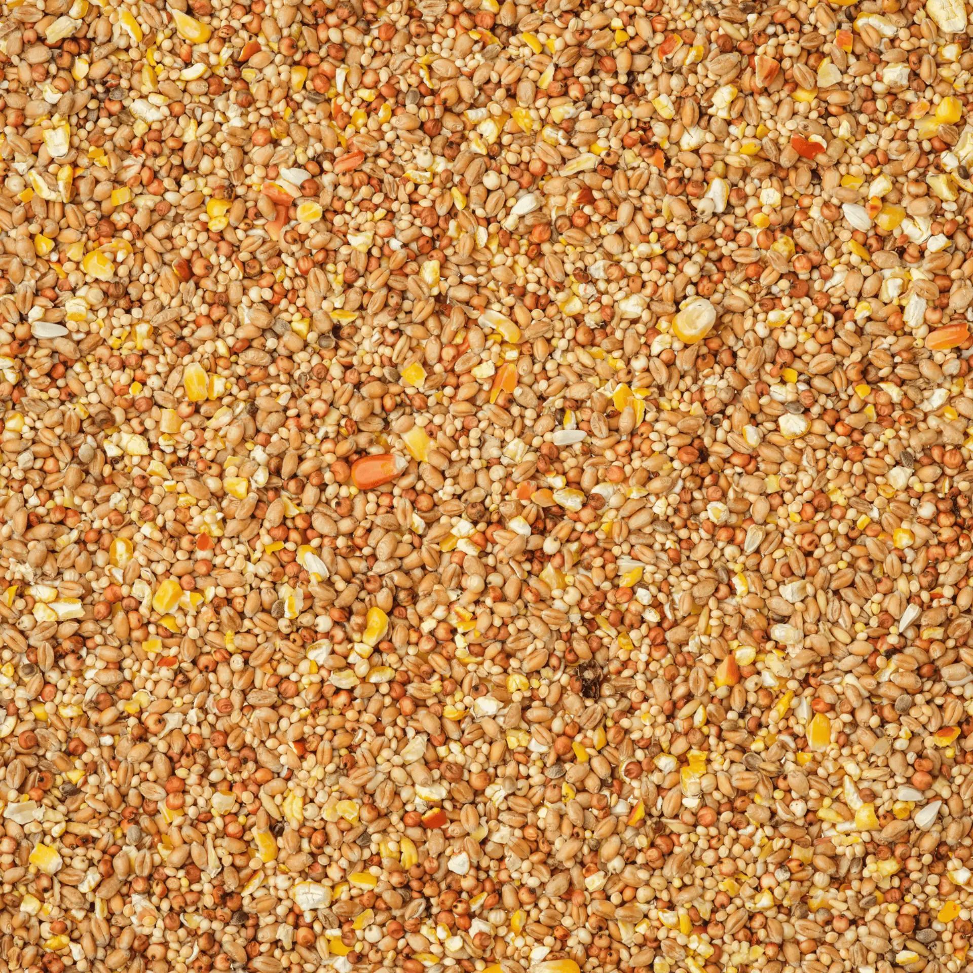 Összetétel: 34,0% búza, 23,0% sárga köles, 21,0% tejbegríz, 17,0% durvára őrölt kukorica, 2,0% dari, 1,0% zabpehely, 1,0% kardvirágmag, 1,0% európai kender.