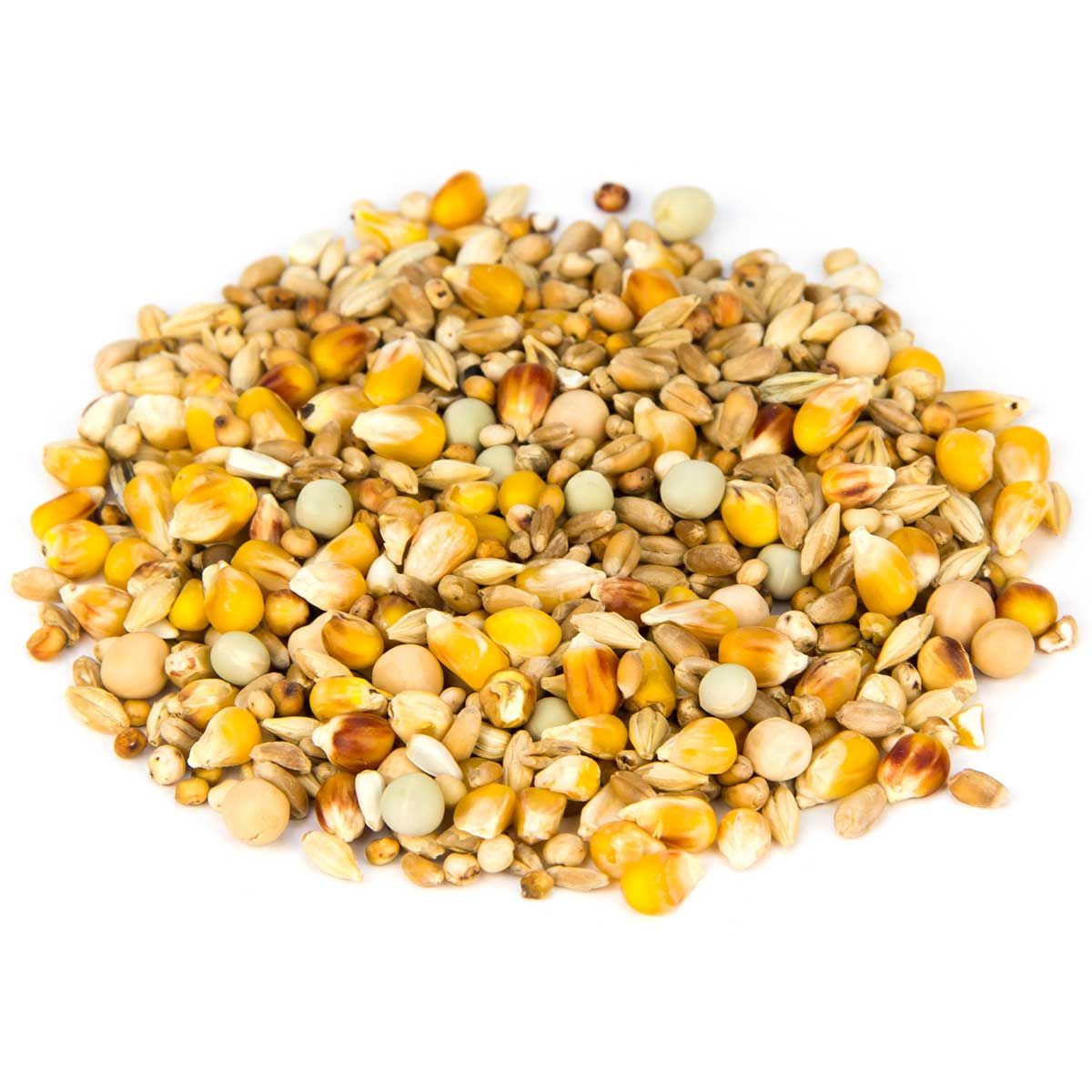 34 % közepes kukorica, 25 % búza, 5 % kisborsó, 8 % nagyborsó, 11 % sörárpa, 10 % milokorn, 4 % dari, 1 % kardvirág, 1 % bükköny, 1 % sárga köles