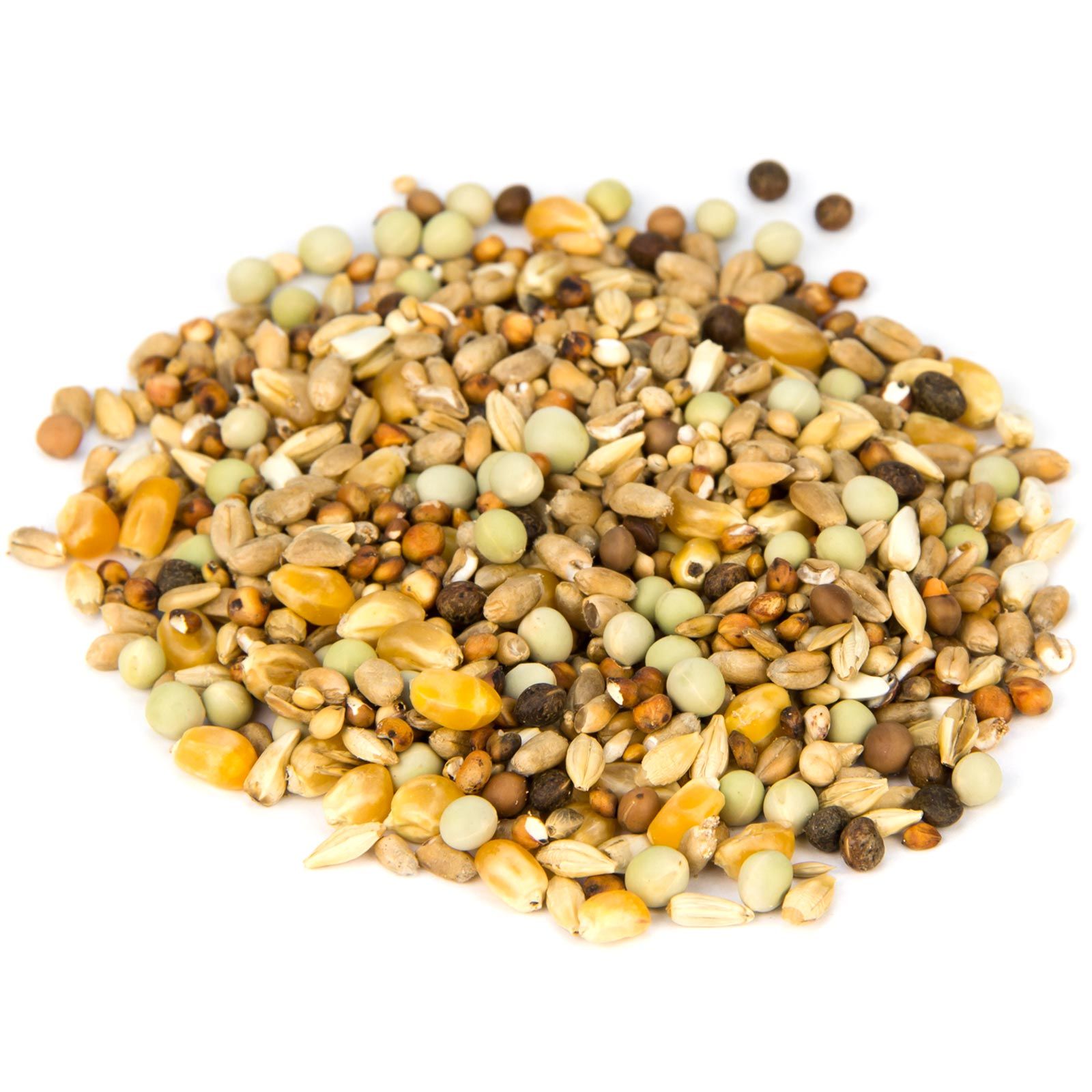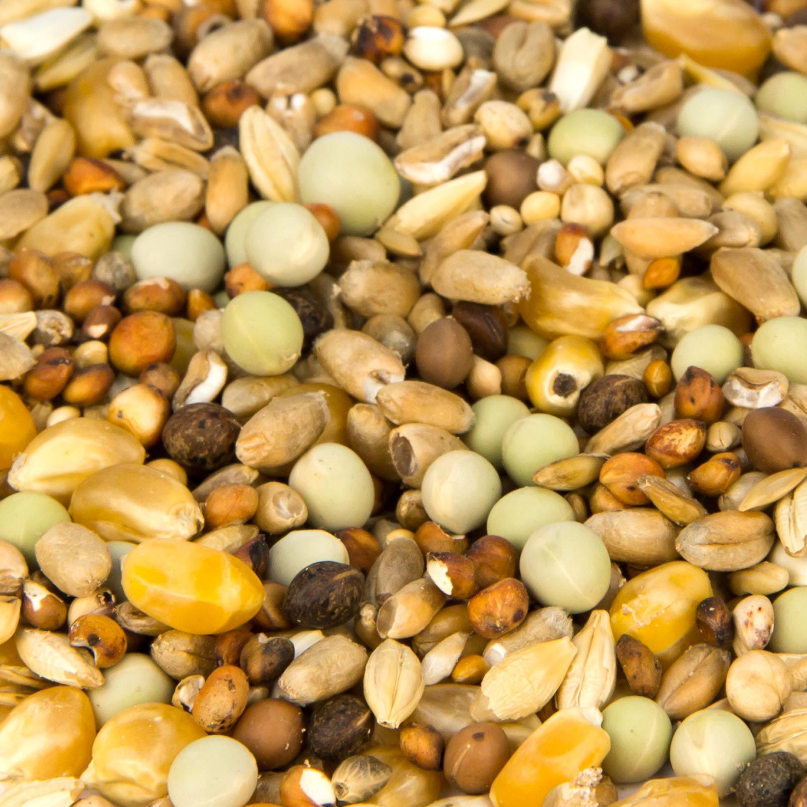 26 % búza, 20 % kiskukorica, 15 % kisborsó, 11 % milokorn, 8 % sörárpa, 7 % bükköny, 3 % sárga köles, 3 % zabpehely, 2 % kardos mag, 1 % vörös köles, 1 % dari, 1 % fényes mag, 1 % kender, 1 % pelus.