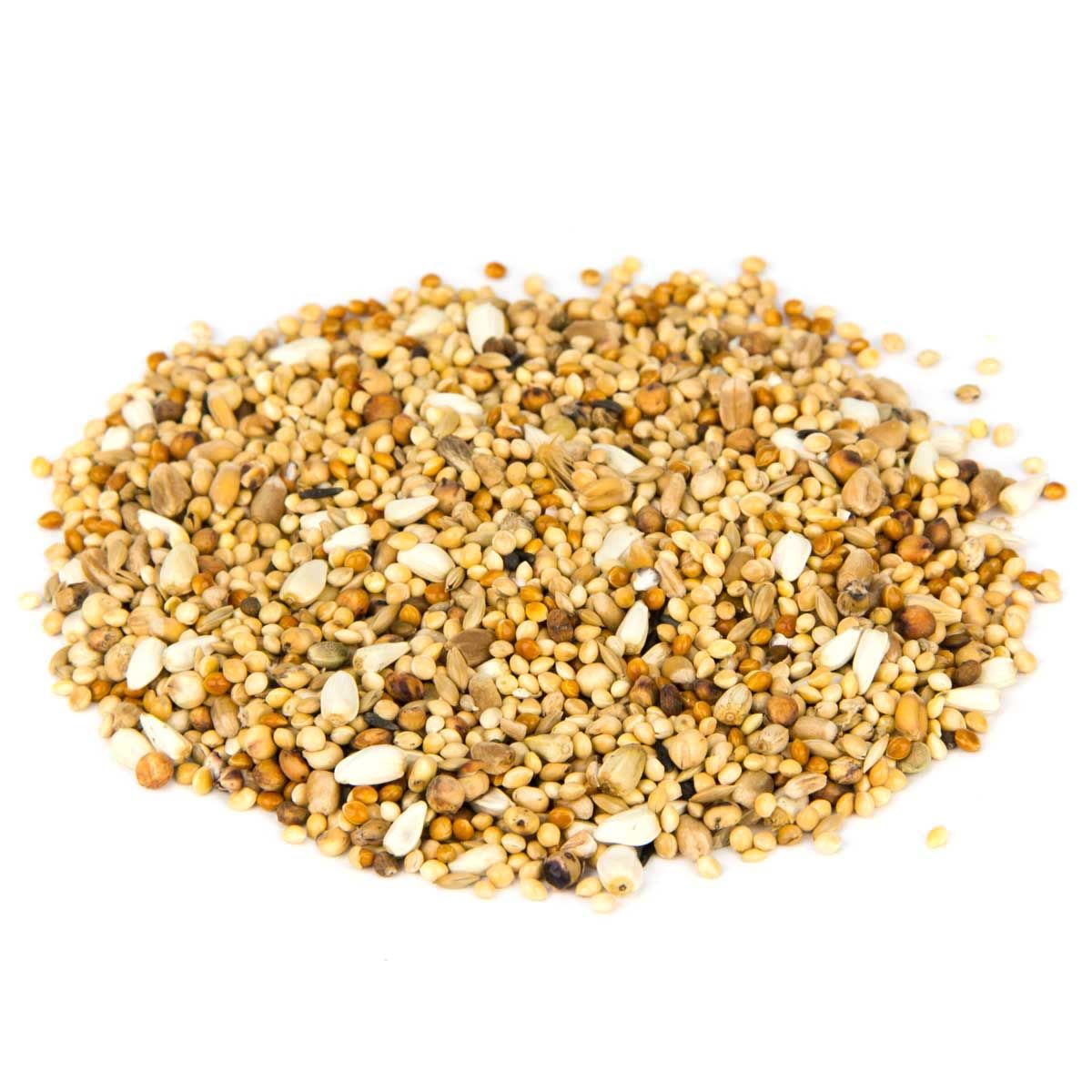 33 % sárga köles, 20 % búza, 13 % dari, 10 % milokorn, 10 % vetőmagkeverék, 7 % sáfrányvirág-mag, 7 % vörös köles.