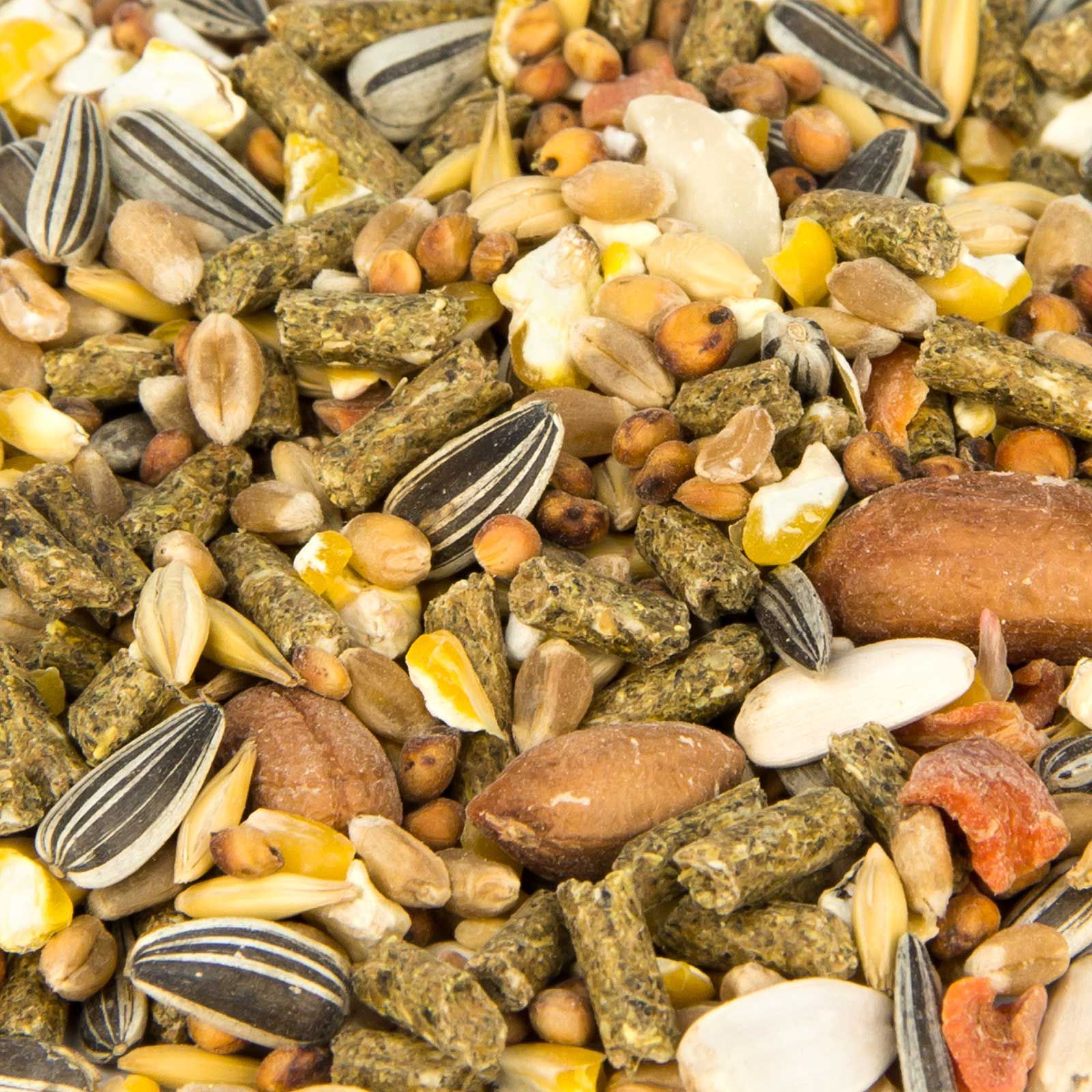 Búza, durvára őrölt kukorica, tejbegríz, csíkos napraforgómag, durva búzakorpa, zöldliszt, zab, sörárpa, földimogyoró "Red Skin", fehér napraforgómag, kockára vágott sárgarépa, kukoricatakarmány koncentrátum, szárított pép, repcemagliszt pálcikával, tökmagpogácsa, melasz, lignocellulóz, kalcium-karbonát, monokalcium-foszfát, nátrium-klorid, nátrium-hidrogénkarbonát, magnézium-oxid.