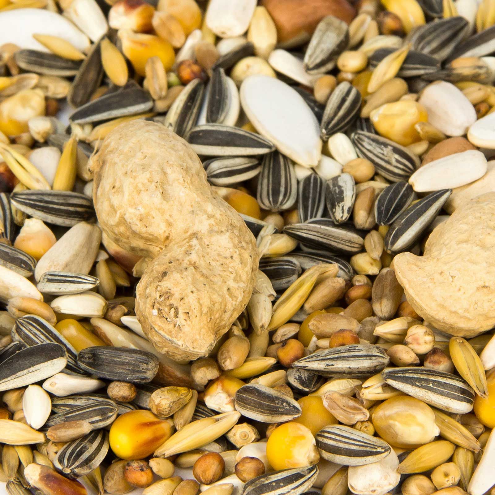 23 % csíkos napraforgó, 5 % fehér napraforgó, 10 % kiskukorica, 7 % zab, 7 % zabpehely, 7 % sörárpa, 12 % búza, 4 % milokorn, 2 % kender, 10 % kardvirágmag, 5 % dari, 2 % fehér tökmag, 1 % kisborsó, 2 % borsószemek, 5 % fehér napraforgó, 3 % vörös héj