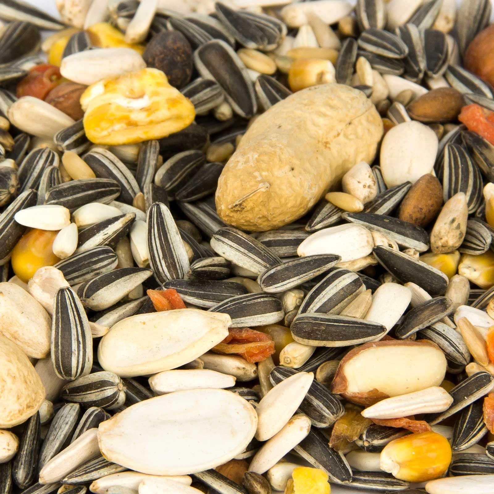 42% csíkos napraforgó, 13% fehér napraforgó, 3% piros héjú, 10% kardiómag, 7% zabpehely, 4% fenyőmag nagy, 5% bögrés földimogyoró, 6% kismogyoró, 5% kender, 3% tökmag fehér, 1% sárgarépapehely, 1% pattogatott kukorica.