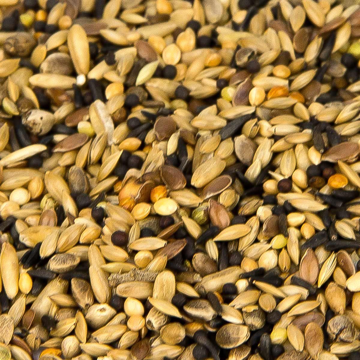 36 % fényes mag, 11 % kender, 10 % fekete repce, 10 % zab, 10 % lenmag, 10 % sárga köles, 9 % néger mag, 4 % vörös köles.