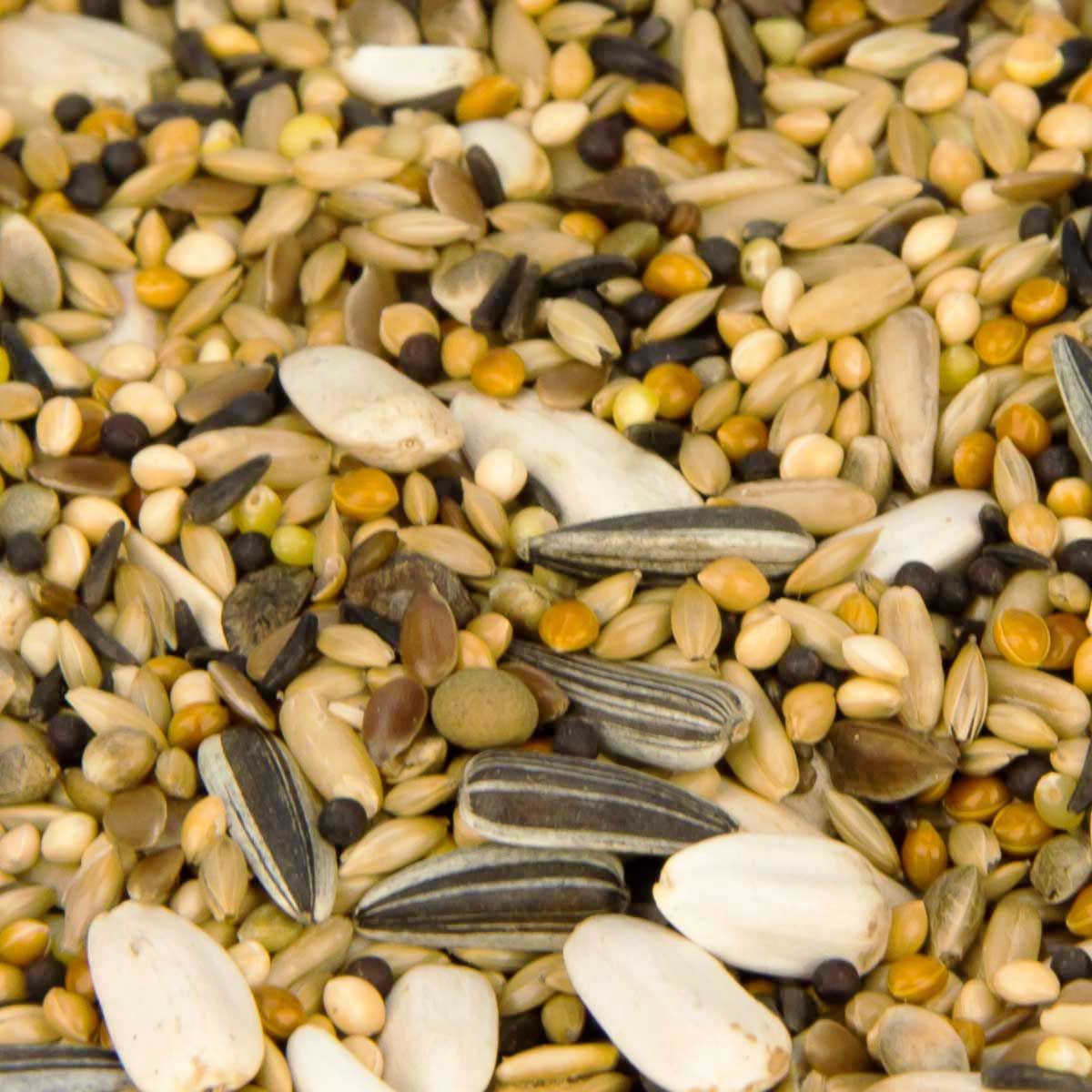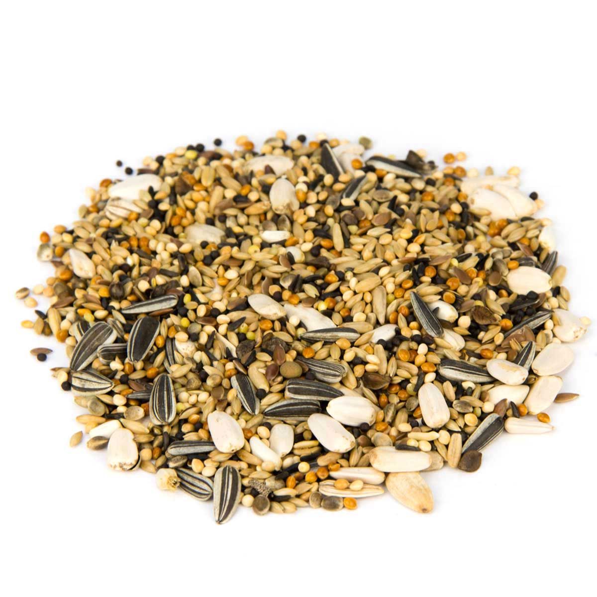 21 % fényes mag, 20 % sárga köles, 9 % vörös köles, 9 % zab, 9 % csíkos napraforgó, 9 % fehér napraforgó, 6 % négermag, 6 % lenmag, 4 % kender, 3 % fekete répa, 2 % hajdina, 2 % kardvirágmag.