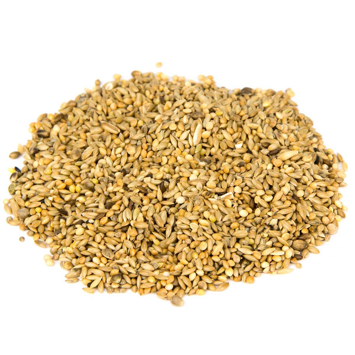 47 % fényes mag, 31 % sárga köles, 2 % japán köles, 5,4 % zab, 12,4 % szenegáli köles, 1,9 % kender, 0,3 % négermag.