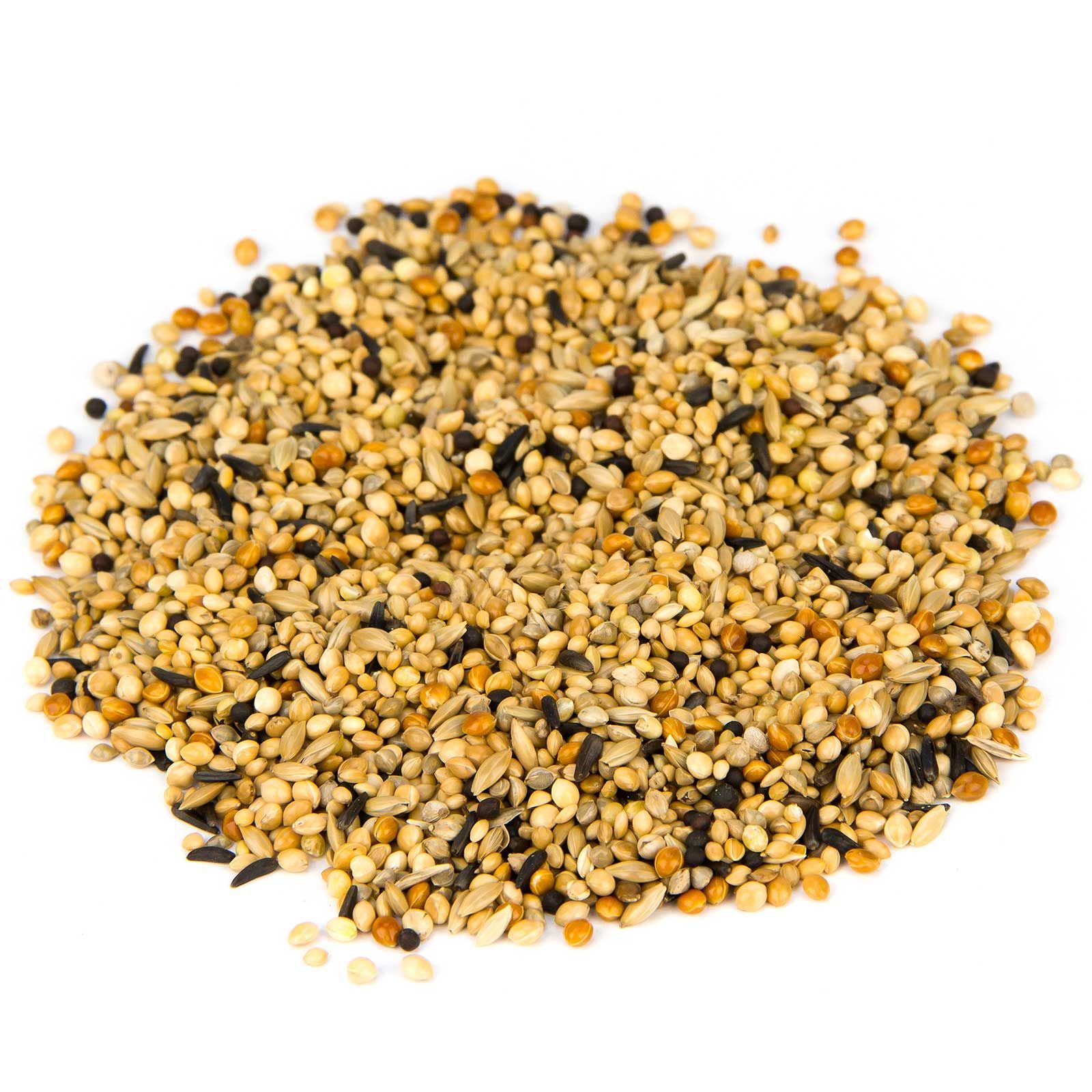 36 % szenegáli köles, 36 % plata köles, 2 % japán köles, 10 % fényes mag, 8 % vörös köles, 4 % fekete répa, 4 % negro mag.